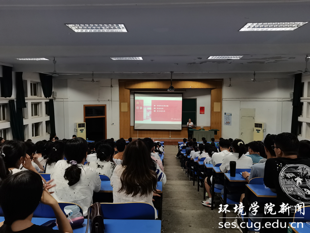 (通讯员陈俊男 摄影陈俊男 编辑耿婧)2021年9月9日晚上,beat365中文官方网站2021级本科新生入学教育系列活动在南望山校区教一楼第二阶梯教室举行。学院党委书记李素矿以“做合格时代新人 当生态环保铁军”为题讲党课。2021级辅导员陈俊男及全体本科新生270余人参加。