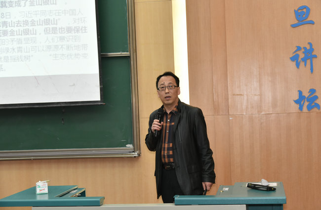 党课上,马腾从社会主义生态文明观的形成背景、科学内涵、新时代大学生的基本素养三个方面进行详细讲解。马院长从新时代的“四个伟大”、习近平新时代中国特色社会主义思想主要内容的“八个明确”和主要方略的“十四个坚持”为同学们详细讲解社会主义生态文明观的形成背景,结合习近平总书记关于生态文明建设的相关论述讲解社会主义生态文明观的科学内涵,并指出“绿水青山就是金山银山”论是习近平同志关于生态文明建设最为著名的科学论断之一,是习近平同志赋予社会主义生态文明观的独特价值和理念追求。