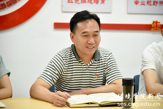 王海锋重点分享个人党史学习情况及收获,并对照检视问题,提出整改措施。他谈到,要深化党史学习教育,进一步做好“我为师生办实事”,对于学生密切关注的就业、安全等问题,需要形成合力、取得实效,通过“小E有约”师生座谈会等方式及时回应学生诉求,落实落细班主任制度、本科生导师制等,发挥全员育人的作用。要通过党史学习教育指导工作,做到“学史明理、学史增信、学史崇德、学史力行”,进一步提升人才培养质量,为建设研究型学院、培养生态环保铁军贡献力量。