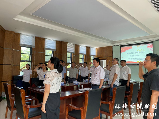 beat365中文官方网站党委书记李素矿、大气科学系主任李双林、党支部书记孔少飞以及教工党员;武汉区域气候中心党委书记、主任夏智宏,科长马德栗,金沙国家大气本底站站长、支部书记王凯,副站长岳岩裕等20余位党员参加。王凯主持主题党日活动,岳岩裕带领全体党员重温入党誓词。