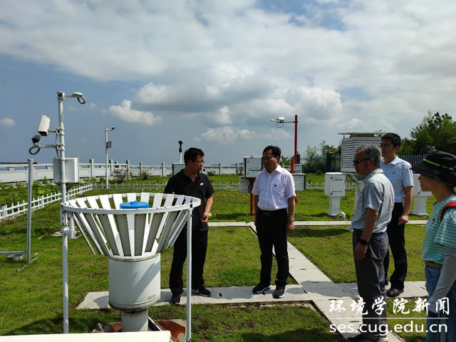 李素矿讲话。他表示,此次参观位金沙国家大气本底站,与站上的同志一起参加联合主题党日活动,非常高兴和激动。看到金沙站从过去的简陋条件到现在高大上、高精尖的一流软硬件设备,为此翻天覆地的变化感到高兴。看到武汉区域气候中心服务国家和地方需求功不可没的成就,眼前一亮。金山本底站不仅是科学研究的重要支撑点,也形成深厚的文化底蕴,站上工作人员对各种仪器设备如数家珍,站内墙上随处可见党建宣传材料和各项规章制度建设,值得学习。他指出,地大与湖北省气象局十多年来局校合作成果丰硕,beat365中文官方网站大气科学菁英班更是局校合作的一个重要硕果。通过建立菁英班,推动了局校合作的进一步深化,坚定了学校推进大气科学专业建设的信心,促进了学校地球科学系统发展。