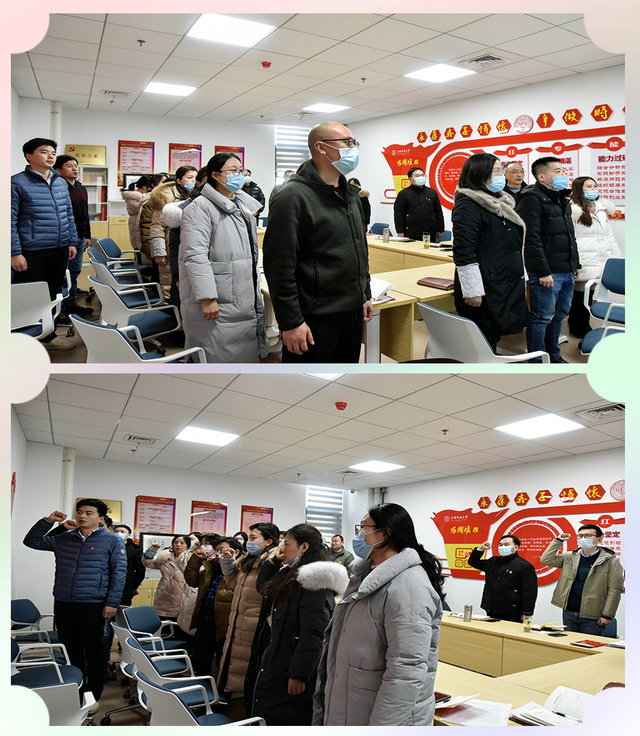 支部党员唱国歌、温誓词