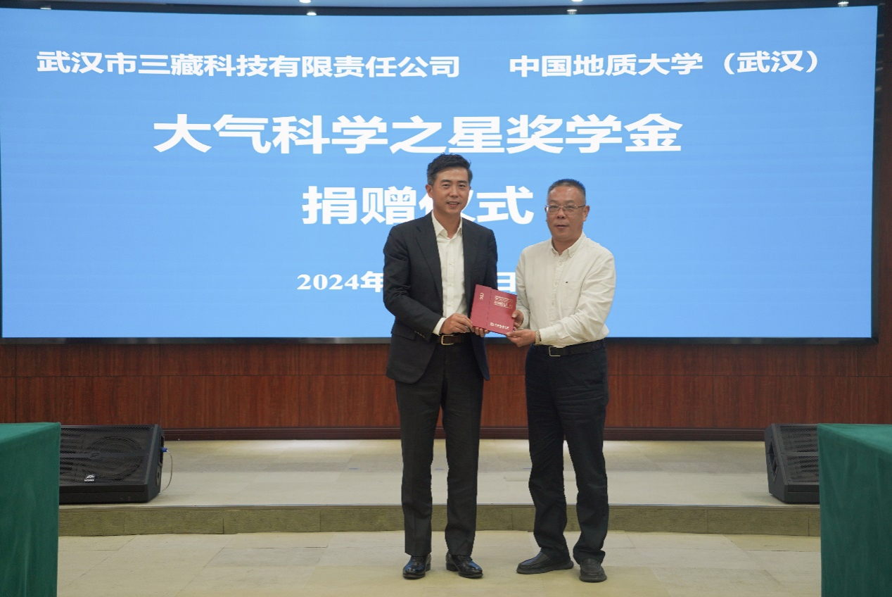 (通讯员孔少飞 摄影孔凡非 编辑耿婧)10月25日,武汉市三藏科技有限责任公司(以下简称“三藏科技”)向beat365中文官方网站捐赠大气科学之星奖学金。三藏科技董事长童甫,首席运营官宋光宇和行政人力总监张艳,我校党委副书记、纪委书记唐忠阳,校友与社会合作处副处长袁江,beat365中文官方网站党委书记姜明敏、院长史建波、副院长柴波、副书记王海锋,大气科学系主任李双林、党支部书记孔少飞和师生代表参加捐赠仪式。仪式由姜明敏主持。