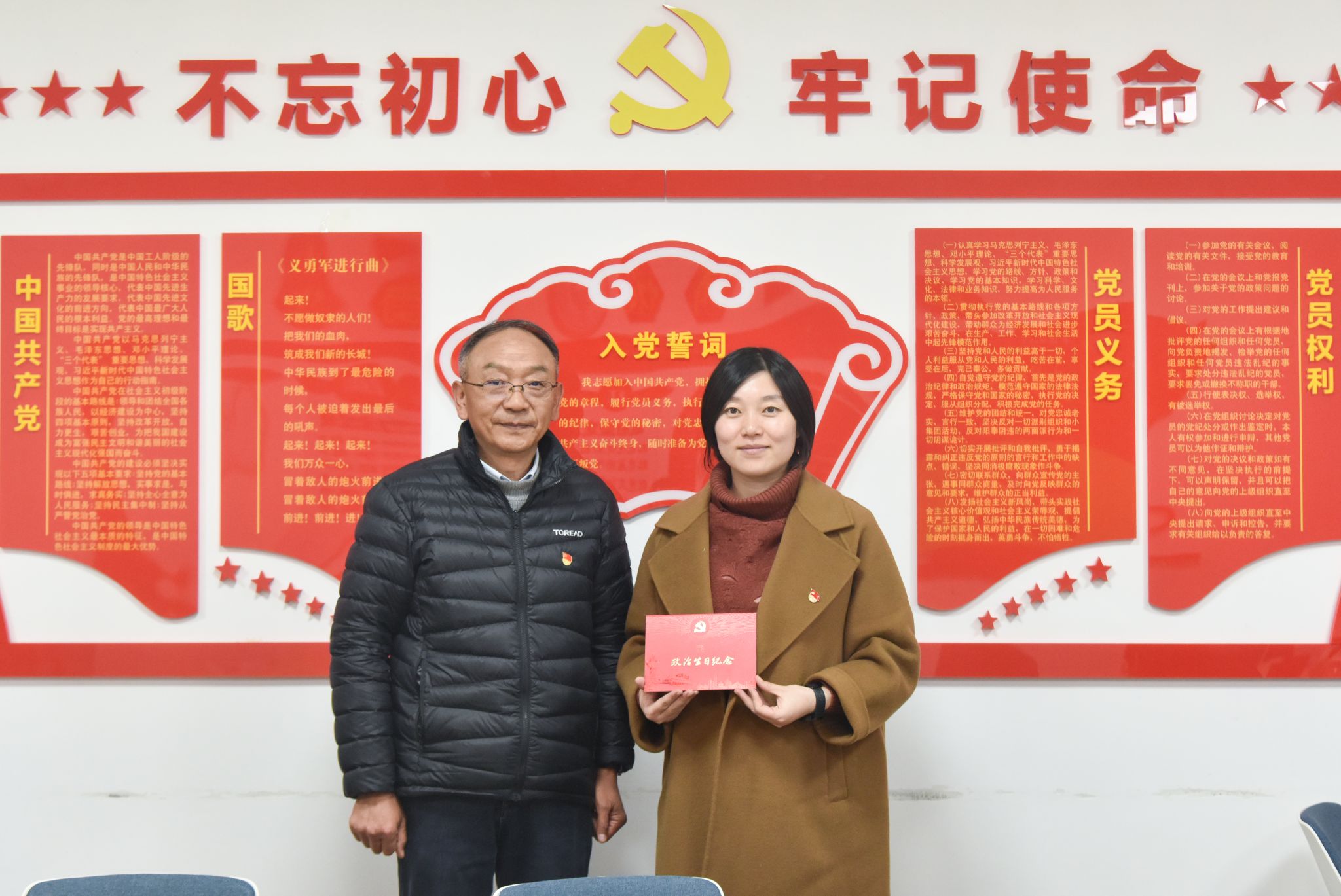 支部党员唱国歌、温誓词。
