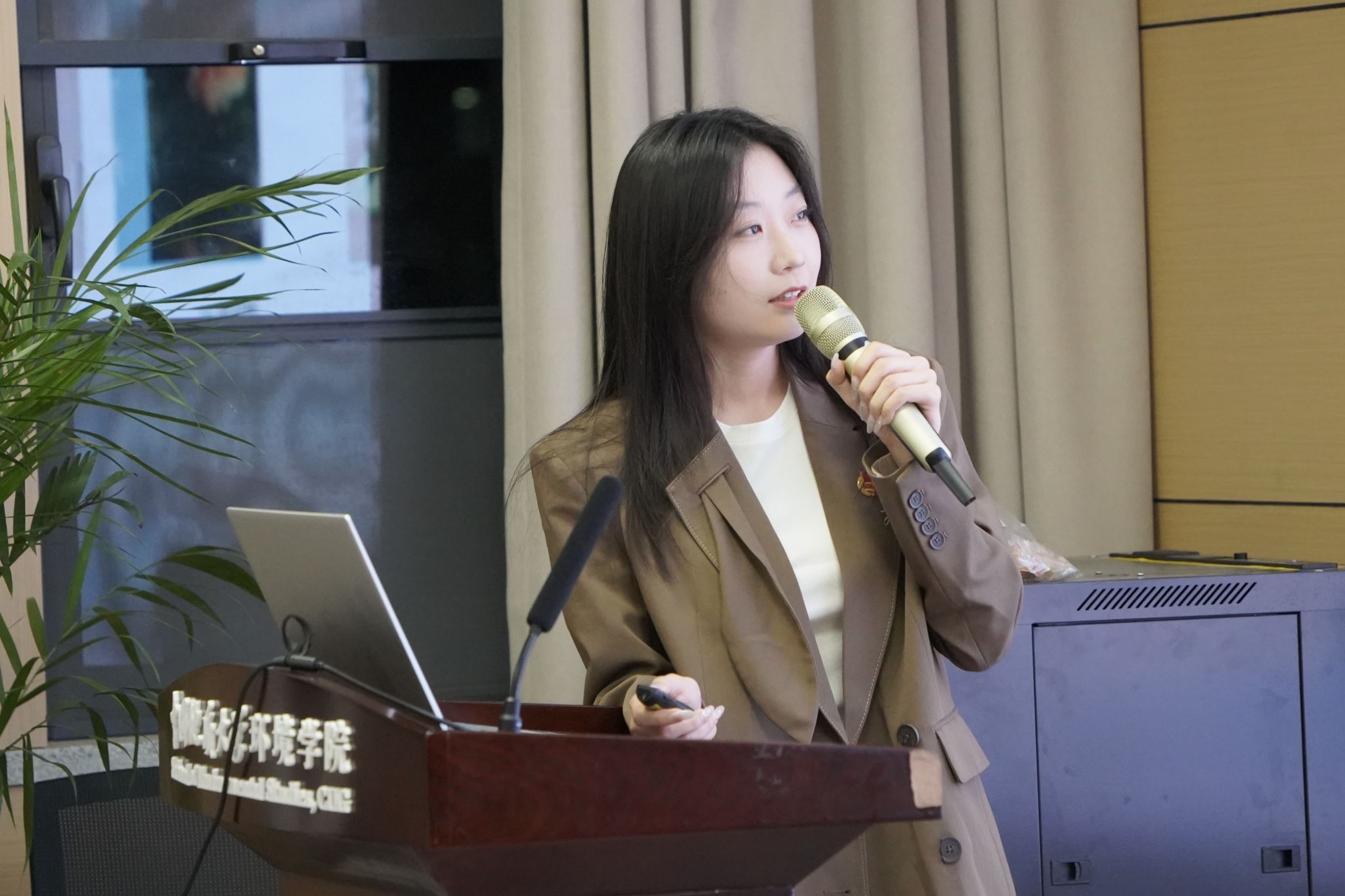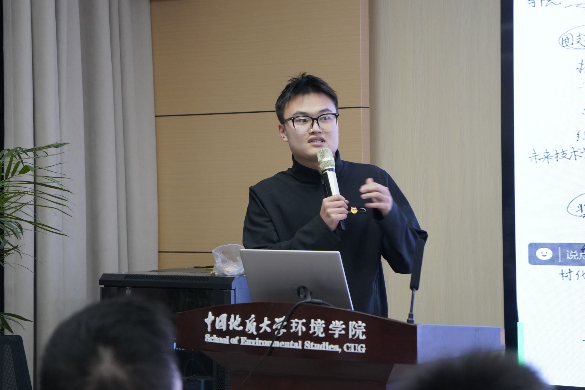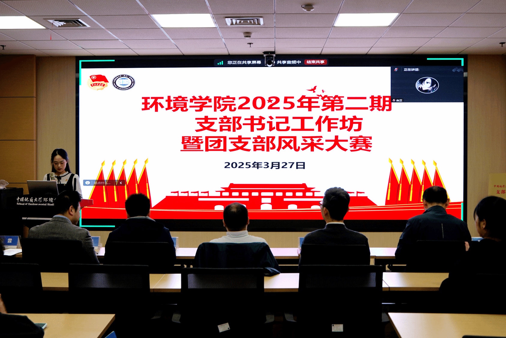 姜明敏总结讲话。他对各团支部的风采展示表示肯定,并重点阐释群团组织政治性、先进性、群众性的内涵意蕴及现实要求。他指出,基层团支部是共青团工作的“神经末梢”,要做到党有号召、团有行动,为学院高质量发展凝聚、培养和输送优秀青年学生,通过强引领、优服务使学院团组织同青年学生的联系更加紧密。他强调,基层团支部要联结上级党团组织、团结身边广大同学,切实发挥好师生之间的桥梁纽带的作用。他希望在学院团委的带领下,各团支部携手努力、追求卓越,引领团员青年在奋斗的年纪释放青春、绽放才华,成长为更有责任“红”、更有底色“专”、更加多维“能”、更加全面“优”的新时代生态环保铁军。