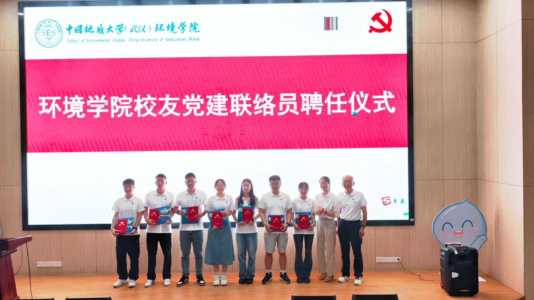 为进一步推进学院高质量党建工作,强化协同联动,推动新时代立德树人工程落地见效,学院党委印发《校友党建联络员聘任管理办法(试行)》,同时聘任冯智等10名毕业生党员担任学院第一届校友党建联络员。陈俊男宣读聘任名单,蒋怀柳、张学海向他们颁发聘书并赠送学院画册。