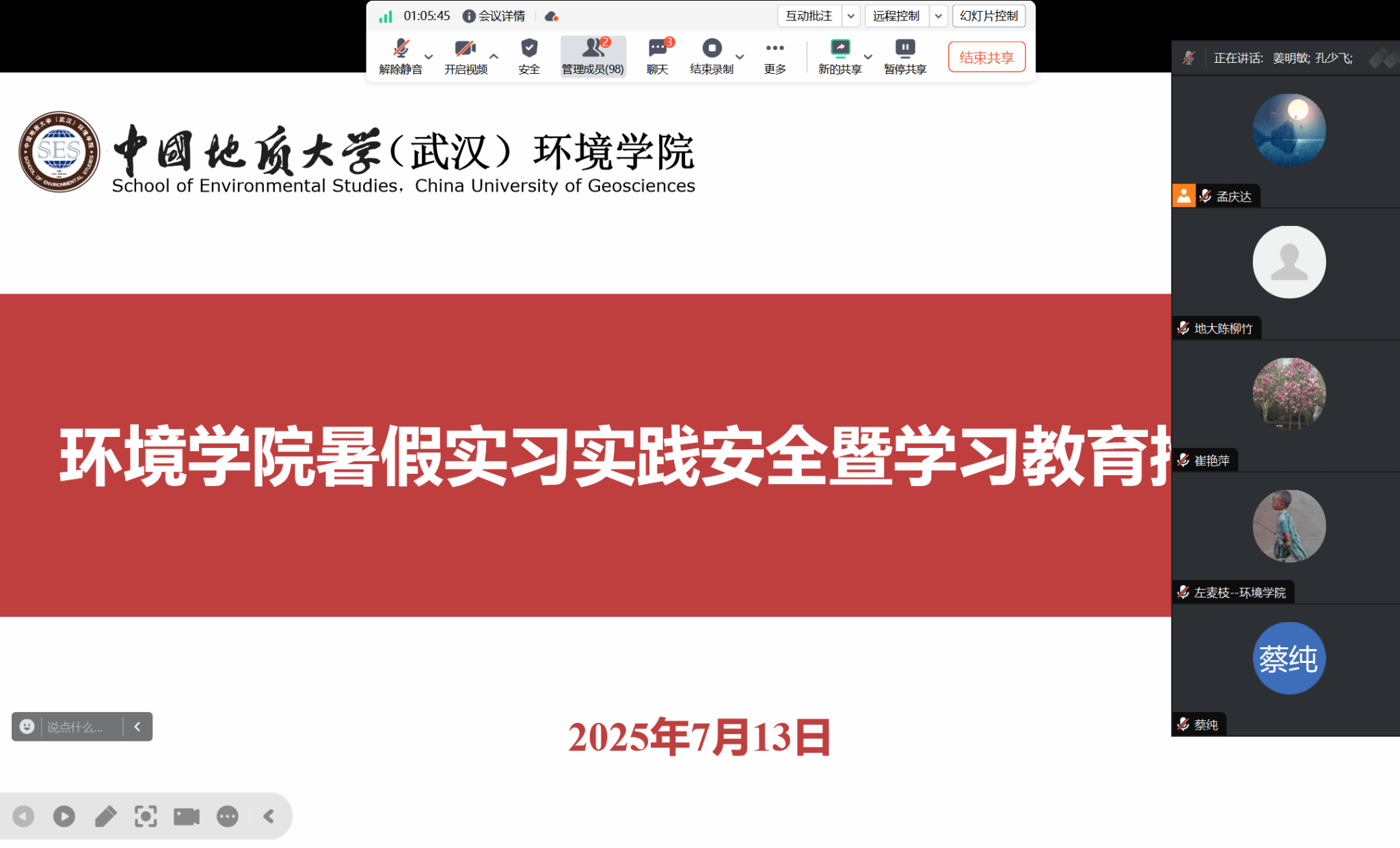 (通讯员付苑婷 编辑申墁烨)7月13日晚,beat365中文官方网站线上召开2025年暑期实习实践安全暨学习教育推进会,学院领导班子成员及全院教职工参会。副院长孔少飞主持会议。