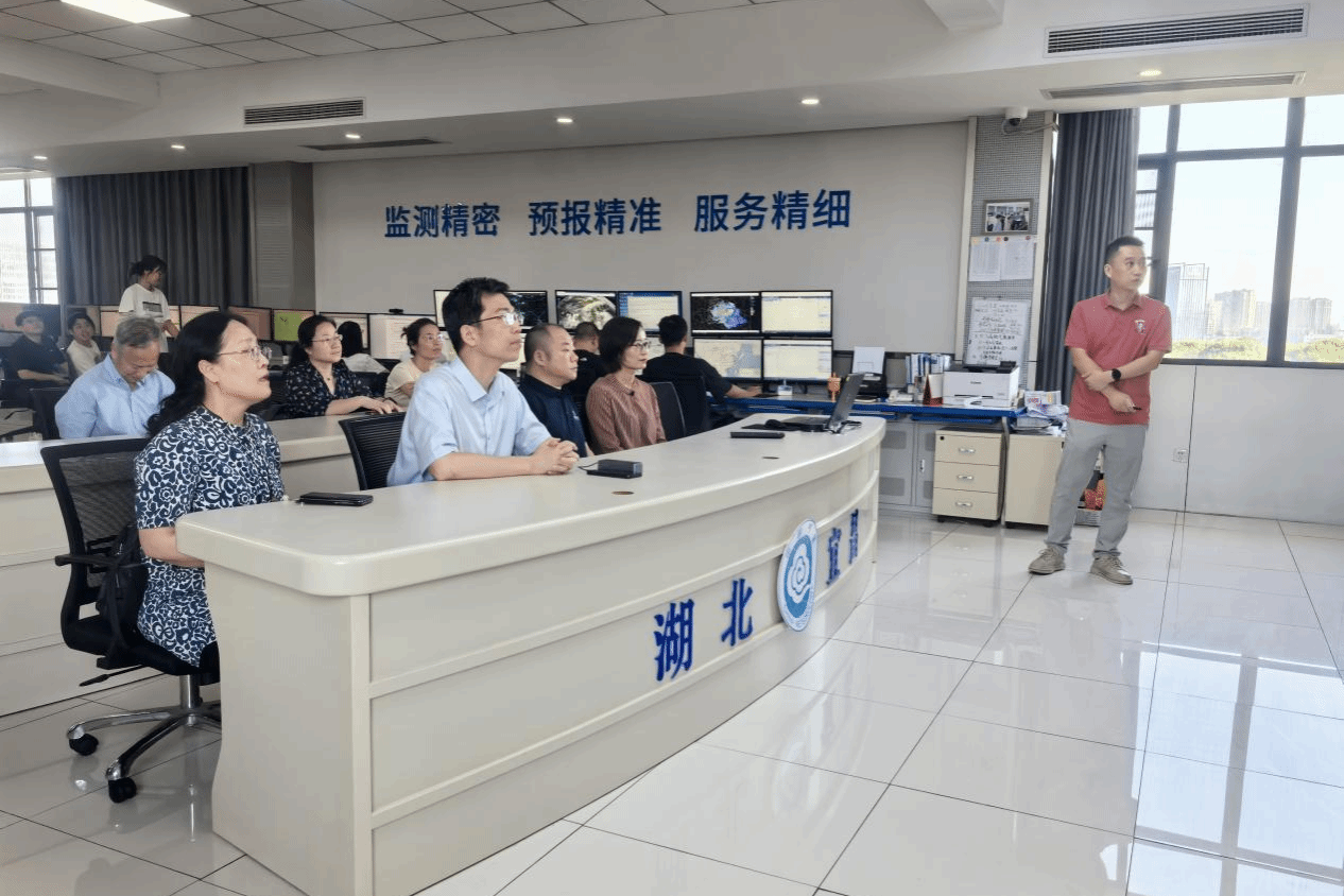 7月25日上午,调研团一行前往宜昌市气象局及三峡国家气候观象台参观调研。在党组书记、局长姜玉印等局领导、相关科室负责人的陪同下,调研团看望慰问了学院在气象局实习的学生,先后参观了气象台、观象台观测场及数据中心,实地了解气象监测预警体系建设与运行情况。在随后的座谈会上,双方围绕气象数据应用、复合型人才培养路径及实习实践资源共享等议题展开深入交流。姜明敏表示,beat365中文官方网站相关专业与气象工作联系紧密,希望以此次调研为契机,共建教学科研实践基地,联合培养适应行业需求的高素质人才。姜玉印对此表示赞同,并期待在党建共建、学术交流及成果转化等方面与学院开展长期合作。