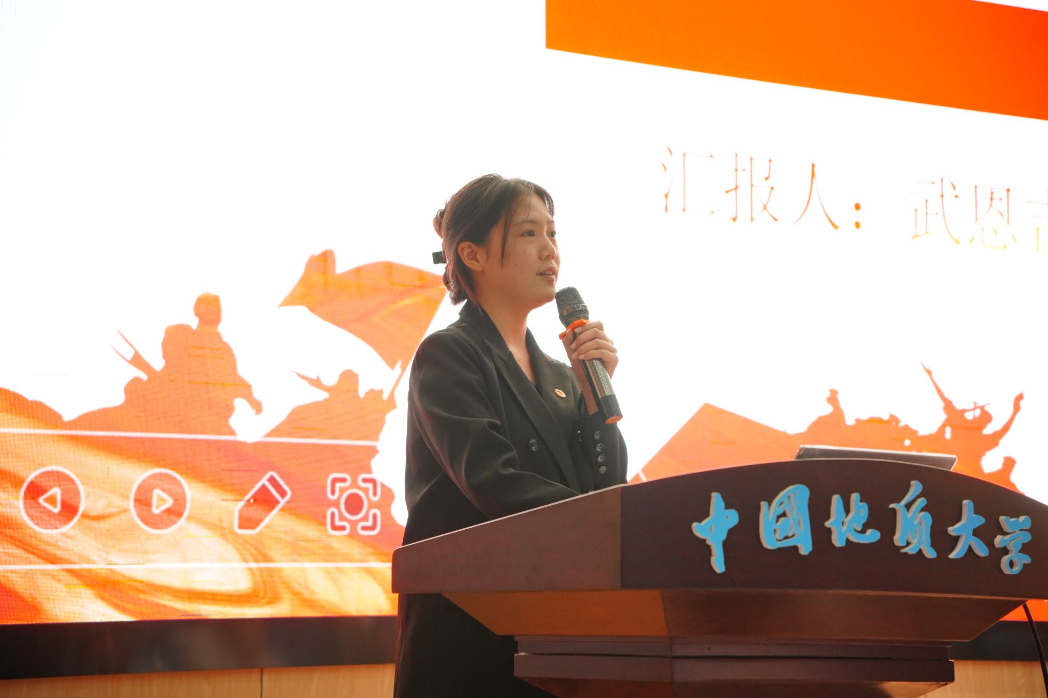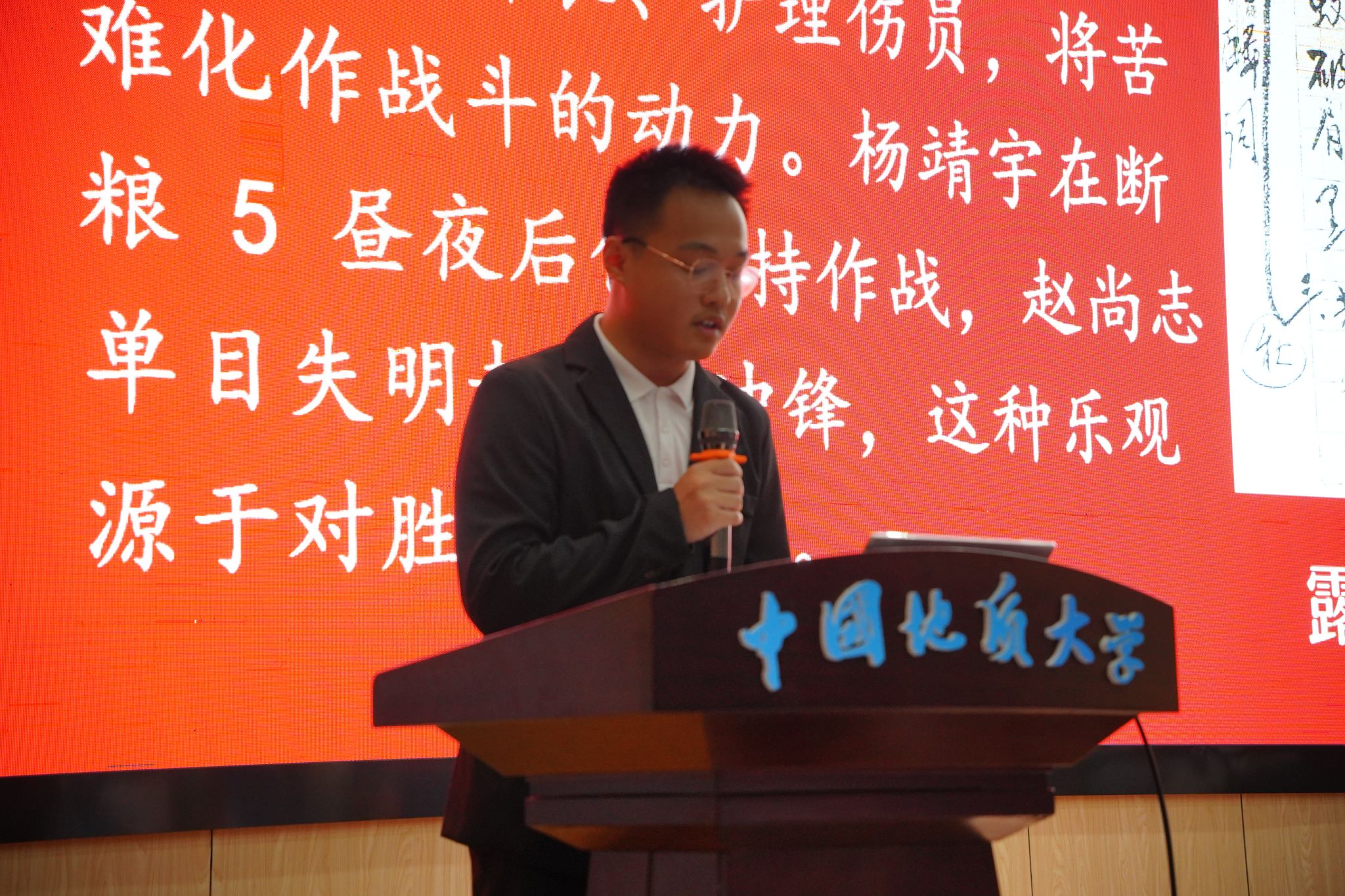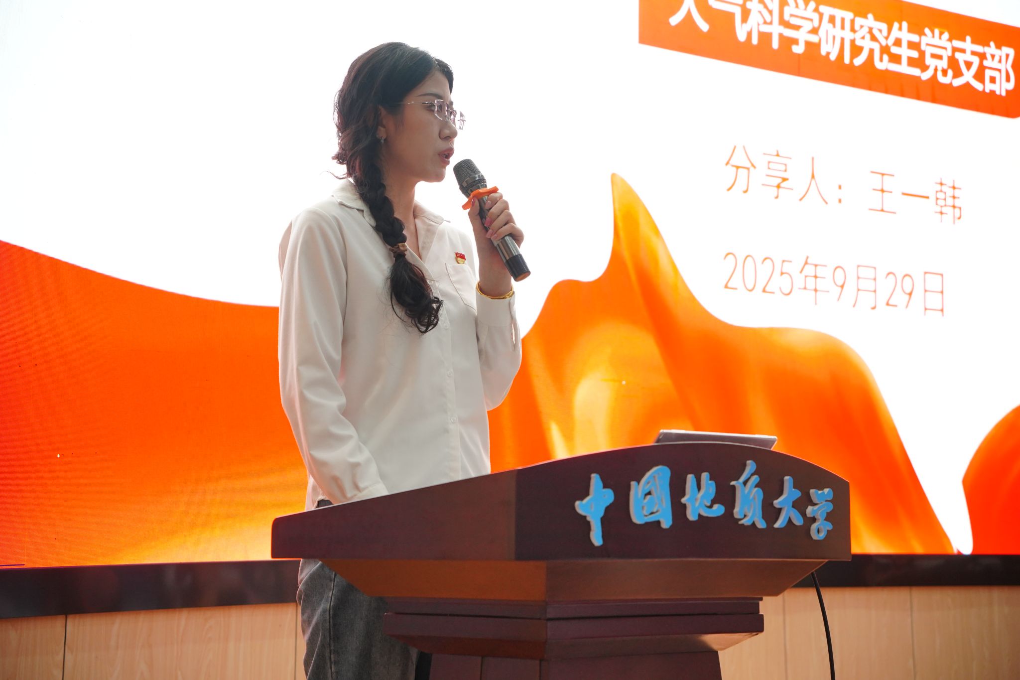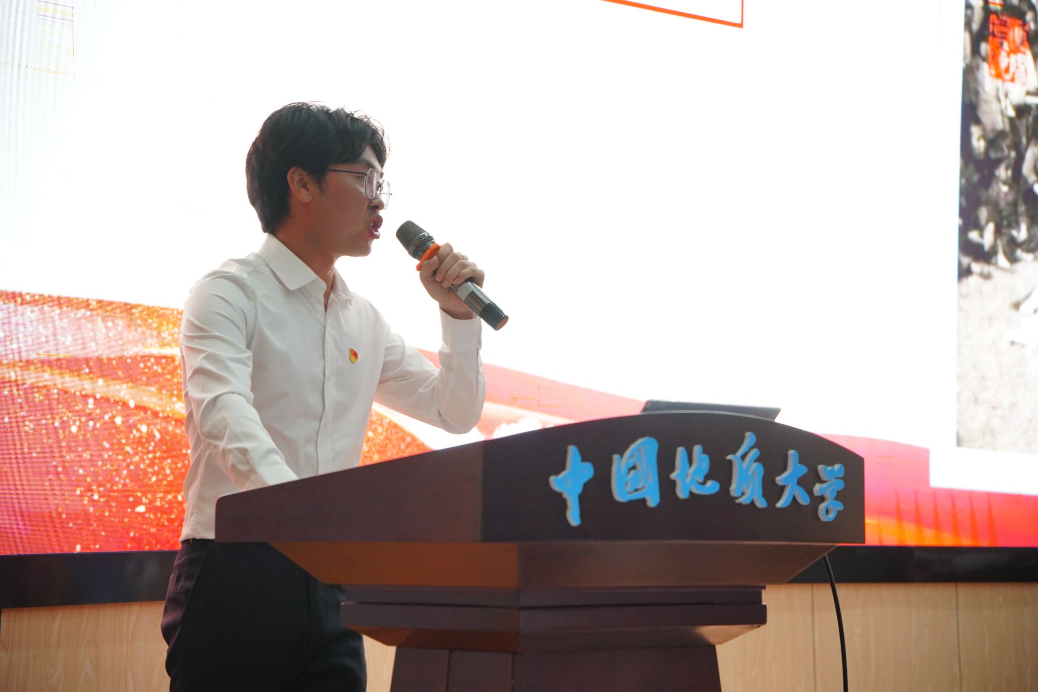 申墁烨为本次宣讲活动三等奖获奖支部颁奖。