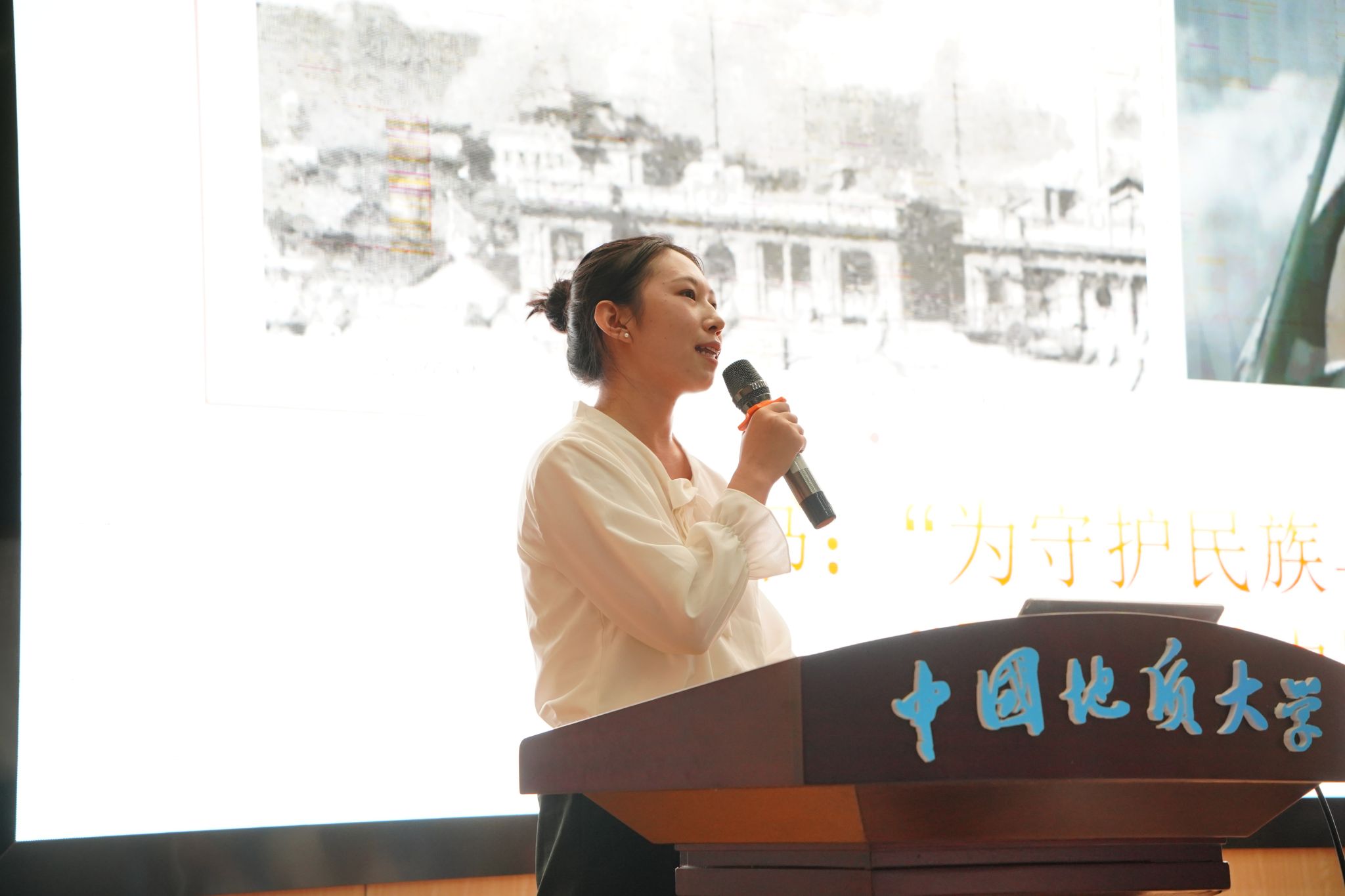 主持人介绍活动规则,学生党团支部书记依次开展党史故事宣讲。生物大气专业大学生党支部、旱区地下水与生态环境研究生党支部、大气科学研究生党支部、环境污染物识别与风险控制研究生第一党支部、环境工程专业大学生党支部等5个学生党支部以及046231团支部、04H245团支部、04H242团支部等3个学生团支部依次进行宣讲。随后,评委老师进行点评。大家一致认为,本次活动主题鲜明,各支部书记通过回顾抗战事迹与沉浸式宣讲,使同学们对伟大抗战精神的核心要义及红色基因的内涵形成更深刻的认识。同时老师们也勉励全体同学,要将缅怀先烈、传承伟大抗战精神的情感共鸣转化为坚定理想信念、勇担时代使命的自觉行动,真正做到内化于心、外化于行。