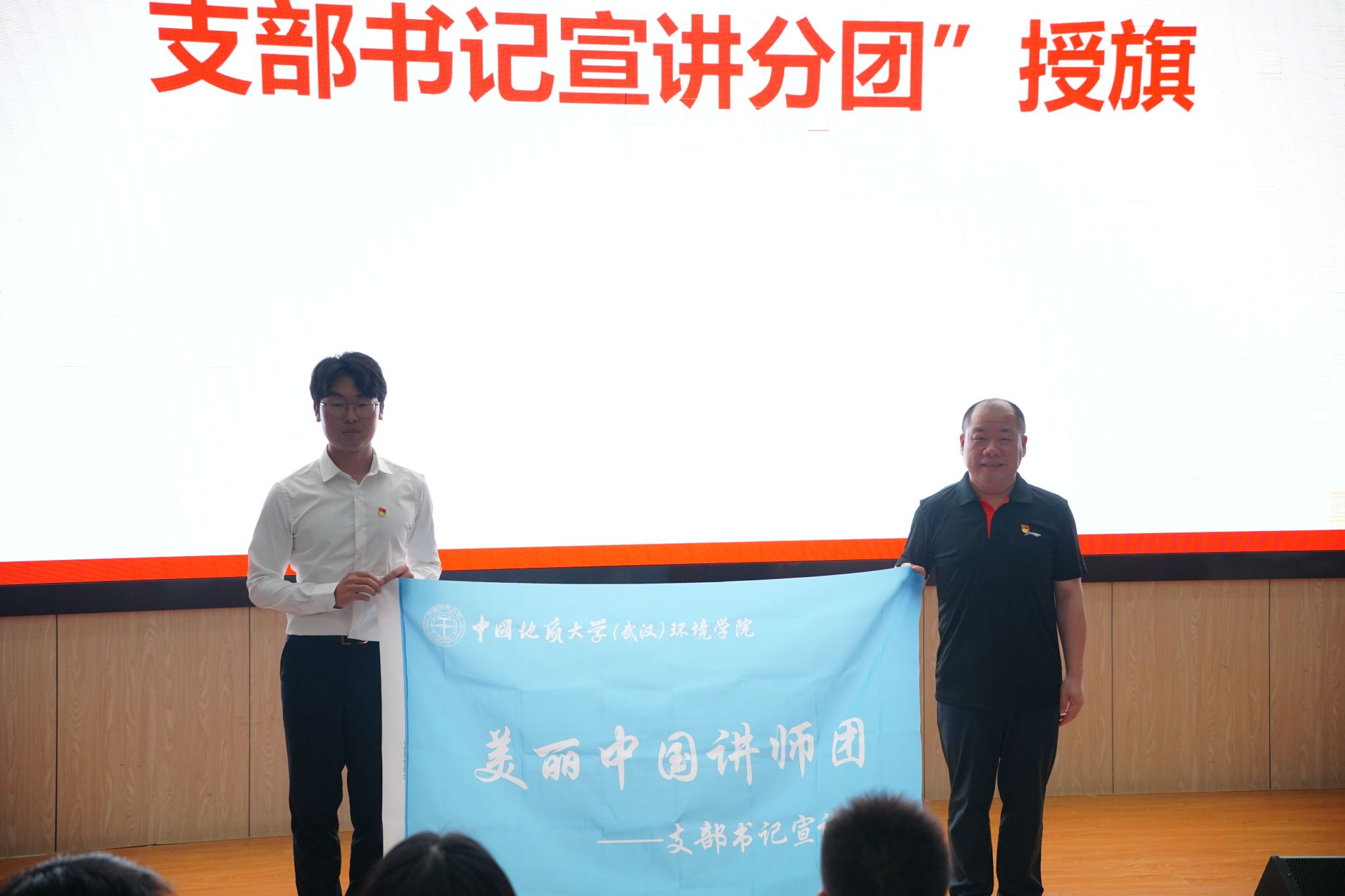 姜明敏为“美丽中国讲师团——支部书记宣讲分团”授旗并总结讲话。他对各支部书记的充分准备和精彩宣讲表示肯定,指出本次宣讲活动既是推进学习教育常态化长效化的一次具体实践,也是铭记奋斗历史、致敬民族脊梁的一场生动课堂,体现了党团联合、本研融合、师生聚合、时空汇合的鲜明特色,各支部书记讲述的是故事、铭记的是历史,分享的是历史、致敬的是英雄,学习的是英雄、传承的是精神。总书记强调,一个有希望的民族不能没有英雄,一个有前途的国家不能没有先锋。作为新时代的青年骨干和新征程的环境学子,要身上有责任、肩上有担当、心中有希望、手中有力量,坚定不移听党话、跟党走,争做有理想、敢担当、能吃苦、肯奋斗的新时代好青年;同时要主动传播正能量、积极影响身边人,以专业学识诠释生态担当,在学习科研、社会实践、志愿服务中讲好红色故事与环保故事,推动红色基因与绿色理念交融并进,这也是学院成立美丽中国讲师团以及支部书记宣讲分团的意义和价值所在。最后,他希望大家用好支部书记工作坊的载体和平台,做有情怀的行动派,当负责任的实干者,汇聚起为中国式现代化挺膺担当的环境青春力量。