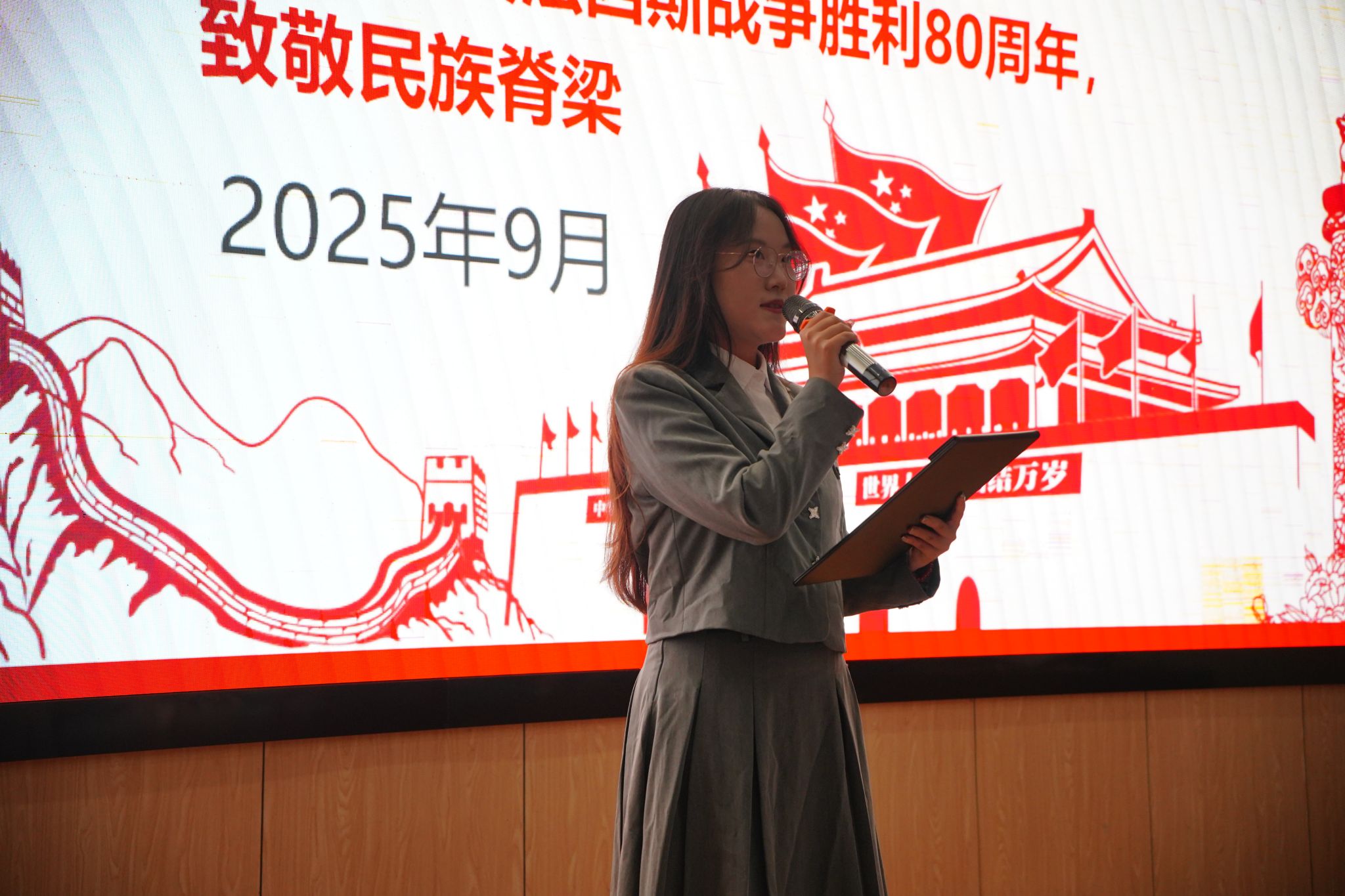 (通讯员贺歆媚 摄影宋怡卓 编辑申墁烨)为纪念中国人民抗日战争暨世界反法西斯战争胜利80周年,致敬民族脊梁,进一步引导广大青年学生传承红色基因,赓续红色血脉,9月29日晚,学院举行2025年第9期支部书记工作坊暨党史故事分享会。学院党委书记姜明敏,学院团委书记孟庆达,辅导员陈俊男、赵恩民、申墁烨,兼职辅导员韦意、李盼盼,学生党团支部书记、学生党建中心成员和入党积极分子等参加本次活动。活动在学院108报告厅举行,学生党建中心高馨雨担任主持人。