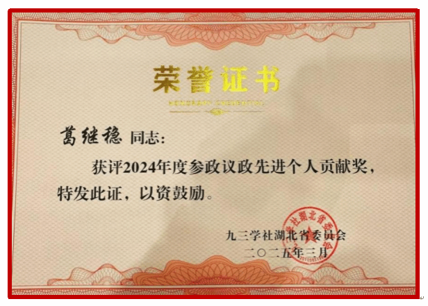 (通讯员马丽媛、胡进 编辑申墁烨)2025年,我校民主党派基层组织和统一战线成员凝心聚力、携手前进,在多领域荣获表彰奖励。其中,beat365官网生物系葛继稳教授获评九三省委会“2024年度参政议政先进个人贡献奖”。
