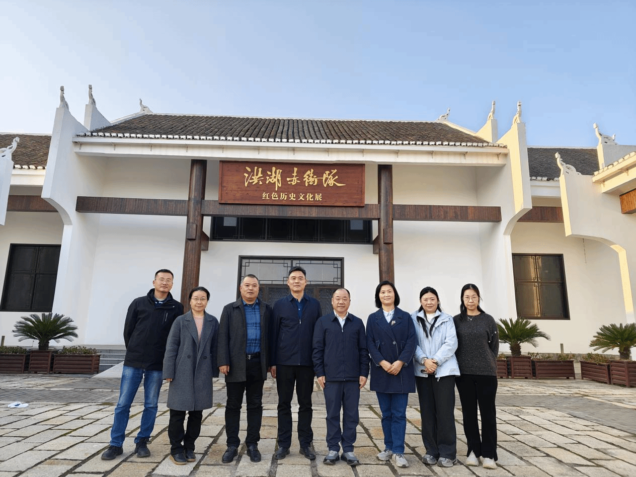 在洪湖市,调研组一行受到洪湖市委常委、副市长罗霄,市委常委、市政府党组成员周智虎的热情接待,与学院挂职洪湖市副市长的谢作明教授进行了深入交流,详细了解其工作生活情况。随后,调研组实地考察了辖区排污溯源整治、水质改善及生活养殖废水治理项目,现场学习生态环境治理经验。在瞿家湾湘鄂西革命根据地旧址,全体人员重温革命历史,接受红色教育洗礼。