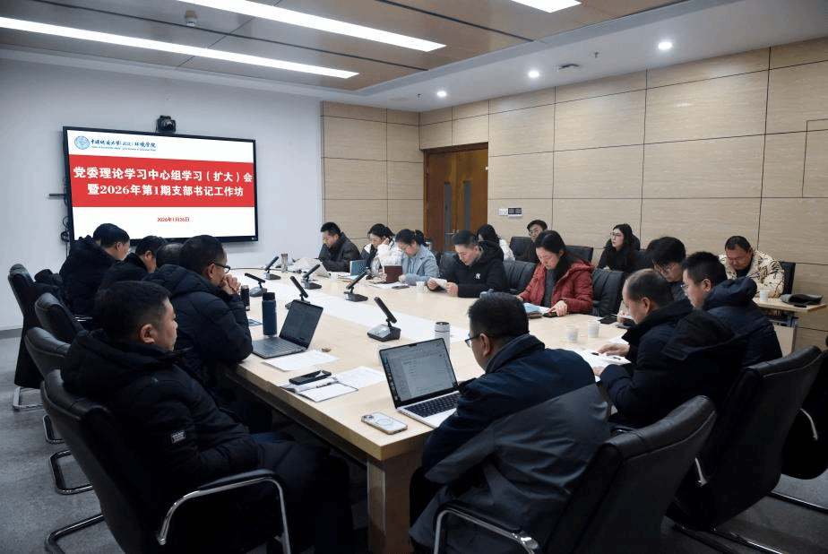 姜明敏领学习近平总书记在中央政治局民主生活会上的重要讲话精神,解读学习学校《党委理论学习中心组学习实施细则》(地大党发〔2025〕75号)。他指出,习近平总书记在中央政治局民主生活会上的重要讲话深刻阐释了新时代党员领导干部践行初心使命、强化担当作为的核心要求,为院领导班子和支部书记履职尽责提供根本遵循。当前正处于“十四五”圆满收官与“十五五”谋篇布局的关键节点,更要以讲话精神为指引,强化政治担当、提升履职能力。针对学院党委理论学习中心组工作,他强调,要创新学习形式,积极拓展外出交流等实践路径,增强学习实效性;要规范工作流程,主动对标先进院系优秀经验,健全完善长效学习机制;要强化学用结合,中心组成员要立足分管工作实际,及时领学传达上级有关精神,推动学习成果落地见效。学院将持续推进党务公开,自觉接受全院师生监督,凝聚起齐抓共管、同心奋进的强大合力,共同谱写高质量发展新篇。