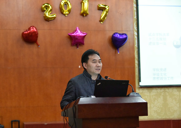 院长马腾代表学院领导班子述职述廉。他向全院教职工报告了一年来“两学一做”学习教育、党的建设、培养人才、研究科学、服务社会、平台建设、环境文化、党风廉政建设和工作作风建设等工作完成进展情况,总结了成绩,查找了不足,提出了今后努力方向。