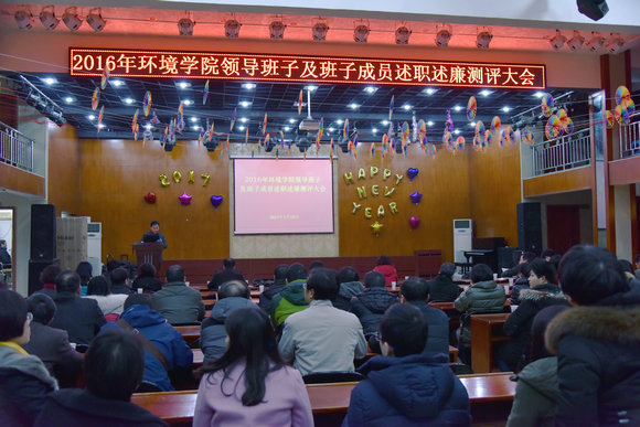 2017年1月10日下午,在学校教职工活动中心综合厅,beat365中文官方网站党委召开2016年学院领导班子及班子成员述职述廉测评大会。学校党委组织部陈汉英老师、beat365中文官方网站领导班子成员、全体教职工参加了述职述廉测评大会。