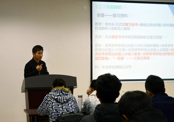 曲乐以“坚持就是胜利”为题讲述了自己的考研故事。“莫听穿林打叶声,何妨吟啸且徐行。”相比于保研,考研需要付出更多努力和汗水,遇到的挫折更是纷杂多样,因此,坚持的重要性尤为突出。曲乐强调:在整个考研期间,尤其是最后几个月的冲刺阶段,拥有好身体是取得好成绩的基本保证。曲乐向同学们分享了自己在考研过程中的复习方法,同时推荐了优质的复习资料,并分享了考试答题技巧。他鼓励大家,只要学会坚持,一定会实现自己的梦想。考研的意义已不只是一场考试,而是一个磨练自我的"过程"。这一过程影响着我们走好人生的下一步,坚持走完它,你将看到一个新的"明天"。