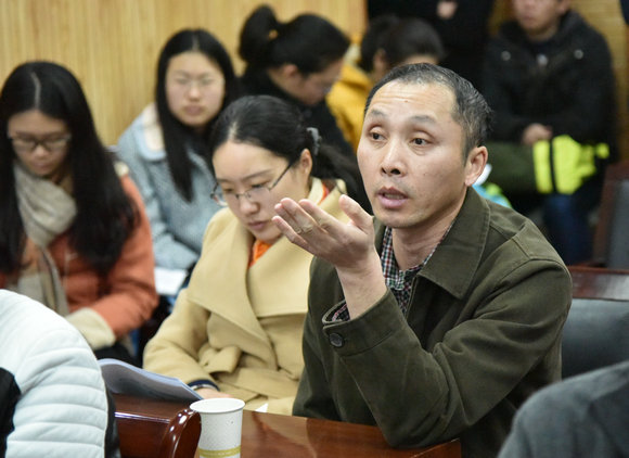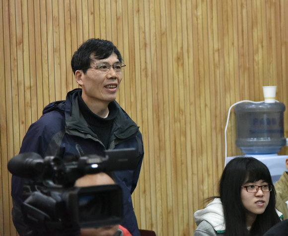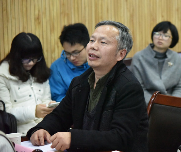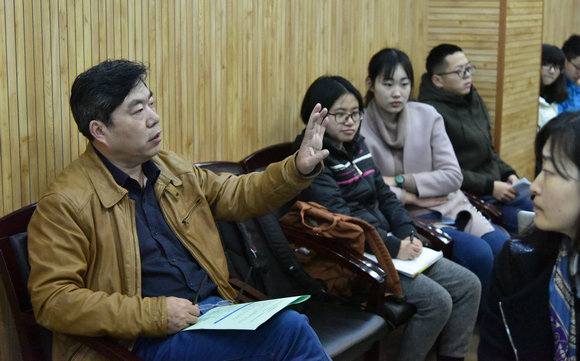 靳孟贵教授与报告人交流