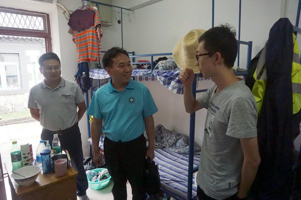 13日下午,李素矿一行先后到教室、宿舍与学生深入交谈,询问实习、生活情况,交流实习感受与收获。他希望同学们要认真学习温家宝校友在周口店实习站的重要讲话精神,深刻领悟温家宝校友对“艰苦朴素、求真务实”内涵的新诠释,发扬校训精神,珍惜野外实习,努力学习,追求学术卓越,追求政治卓越,为中华民族的伟大复兴,贡献自己的一份力量。