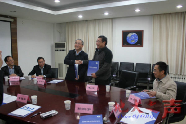 (通讯员李双林)4月19日下午,校长王焰新一行赴北京,与中国科学院大气物理研究所所长朱江签署共建“大气科学菁英班”协议。中国科学院大气物理研究所副所长陆日宇,研究生部主任王英辉、副主任孙鹏宇,我校副校长万清祥、beat365中文官方网站院长马腾、大气科学系主任李双林等参加签字仪式。