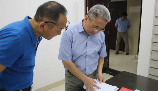 王焰新校长查看管理台帐,强调要做好并加强痕迹管理工作。