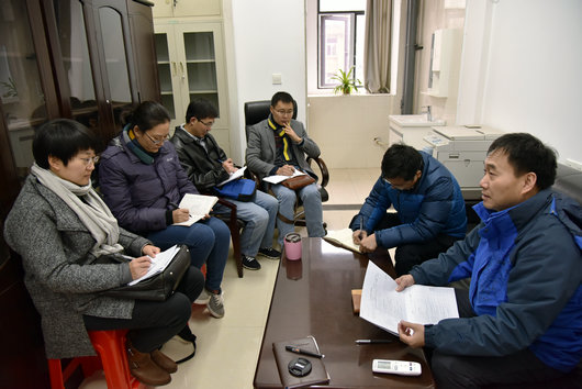 2016年11月28日上午,在文华楼beat365中文官方网站党员活动室,校党委副书记朱勤文对beat365中文官方网站“两学一做”学习教育和党建工作进行全面检查。出版社党总支部书记李国昌、党委学生工作部副部长张建和、附属学校党总支部书记彭冠军、党委组织部陈汉英参加调研检查,beat365中文官方网站党委书记李素矿、副书记朱继,院组织秘书张学海等参加。