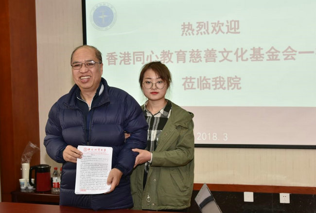 甘义群致辞。他代表学院欢迎同心基金会一行的到来,并介绍了学院的整体情况及2017年同心奖学金评选情况。他强调,同心基金会的爱心不仅仅是给学生物质上的帮助与激励,更重要的是在人才培养层面上给学生精神上的鼓励。