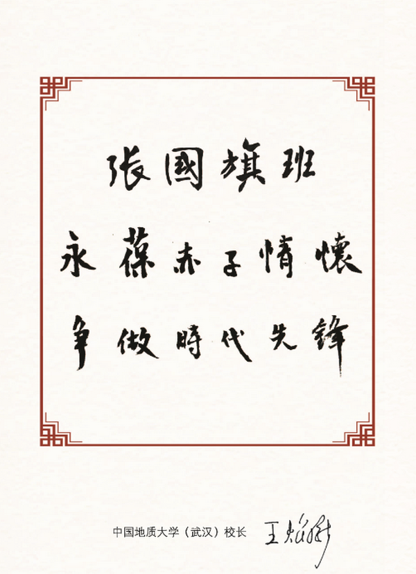 (通讯员:李平 编辑:张学海)beat365中文官方网站党委创新实施“张国旗班”行动计划,校长王焰新为“张国旗班”题名,并寄语青年学子:“永葆赤子情怀,争做时代先锋”。