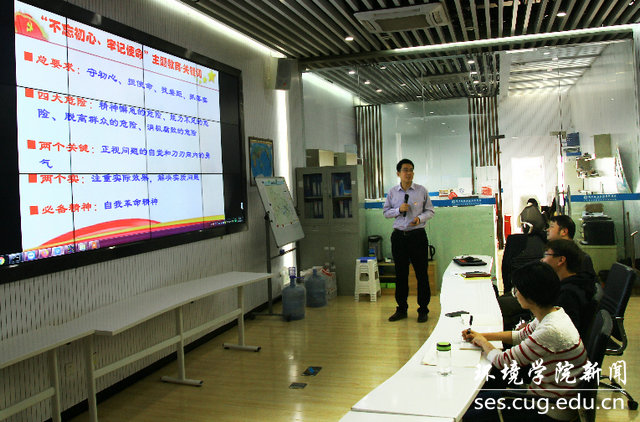活动最后,许克学站长作总结讲话。他首先赞扬了地大源排放与区域大气环境团队师生在本职工作中很好的体现了此次主题教育的主题,在教书育人、以科研提升能力、为社会发展做好支撑和服务工作中,体现了担当。他指出,省站和地大,要开展更加紧密的合作,取长补短,为推动湖北省生态环境事业发展贡献力量。他强调,湖北省环境监测中心站四支部要加强和维持与大气科学系的合作,不仅要做好业务、科研的结合,还要搭建党建交流平台,实现良性互动和循环。最后,针对如何把工作做好,许站长谈了五点体会:(1)任何工作和事业都要确定好的目标,我们党要坚持两个一百年奋斗目标,我们个人要志向高远,脚踏实地;(2)任何工作和事业都要确定好路径,找准道路和方向更重要;(3)任何工作都不是轻易就完成的,道阻且长,我们唯有脚踏实地,埋头苦干;(4)共产党人要有坚韧不拔的毅力,所谓初心易得,坚持不易,每位党员同志要不怕苦,不怕死,以行百里者半九十的态度,走好每一步;(5)我们要保持严谨的态度,要坚持精益求精,所谓失之毫厘,谬之千里。要坚持高和严的标准,干好每一件工作,展现新时代新青年的精神风貌。许站长指出,随着省站和地大共建湖北省大气复合污染研究中心工作的推进,环境更好、条件更好、基础更牢,双方应更加紧密的交流合作,干好每一件事,为实现和守护湖北常态化的蓝天白云贡献力量。