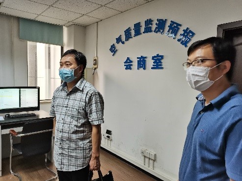beat365中文官方网站党委书记李素矿、校党委组织部副部长梁本哲实地参观市环境监测中心,并与监测中心党委书记、主任梁胜文交流。