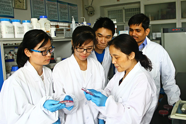 在不断开拓地球科学与生命科学交叉领域的同时,她时刻不忘在具有地球科学优势的中国地质大学(武汉)建设微生物平台的重要性。毫无疑问,在服务国家需求方面,她已经完完全全地与微生物“合体”了。2003年,学校提出了新办生物科学专业,她临危受命、白手起家,带领部分年青教员承担起新学科的建设重任。作为学校生物科学专业的创始人之一,自2003年以来,王红梅教授对生物科学的专业建设和学科建设投入了大量的时间和精力。她主持完成了该专业的论证、教学计划和培养方案的制定,以及微生物学、细胞生物学、普通生物学、遗传学和生物化学与分子生物学等教学实验室的建设工作。她以负责人身份承担了学校第一批“优秀青年教师特色学科团队”项目。