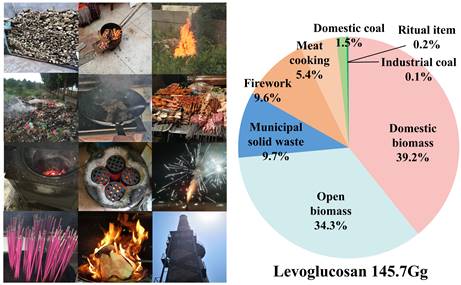 生物质燃烧是大气中一次和二次污染物的一类重要贡献源。识别不同类型生物质燃烧污染物排放特征,精准解析其对大气污染物的贡献,对制定和完善控制政策具有重要意义。现有研究通常认为左旋葡聚糖(LG)仅仅来自于生物质燃烧排放,会高估生物质燃烧对环境介质中有机质或大气气溶胶的贡献,甚至产生不合理的结果。本研究首次揭示了不同燃烧源对左旋葡聚糖排放的定量贡献,并为模拟烟气老化时间及传输影响范围,LG在大气中气相、液相氧化机制等模拟研究等提供基础数据支撑。