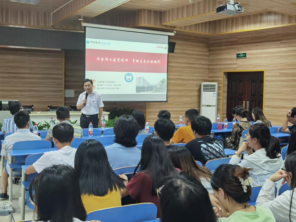 (通讯员胡治翔 薛晴文 李平 编辑严丽莎)2021年7月29日下午4点,beat365中文官方网站秭归实习-党史学习教育第三讲在秭归产学研基地三楼阶梯教室进行,在站实习师生参加,队长罗明明主持。院党委书记李素矿以“传承伟大建党精神,争做生态环保铁军”为题领学。