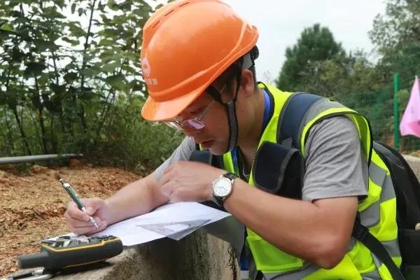 刘佳伟在山体滑坡现场勘测滑坡位移数据