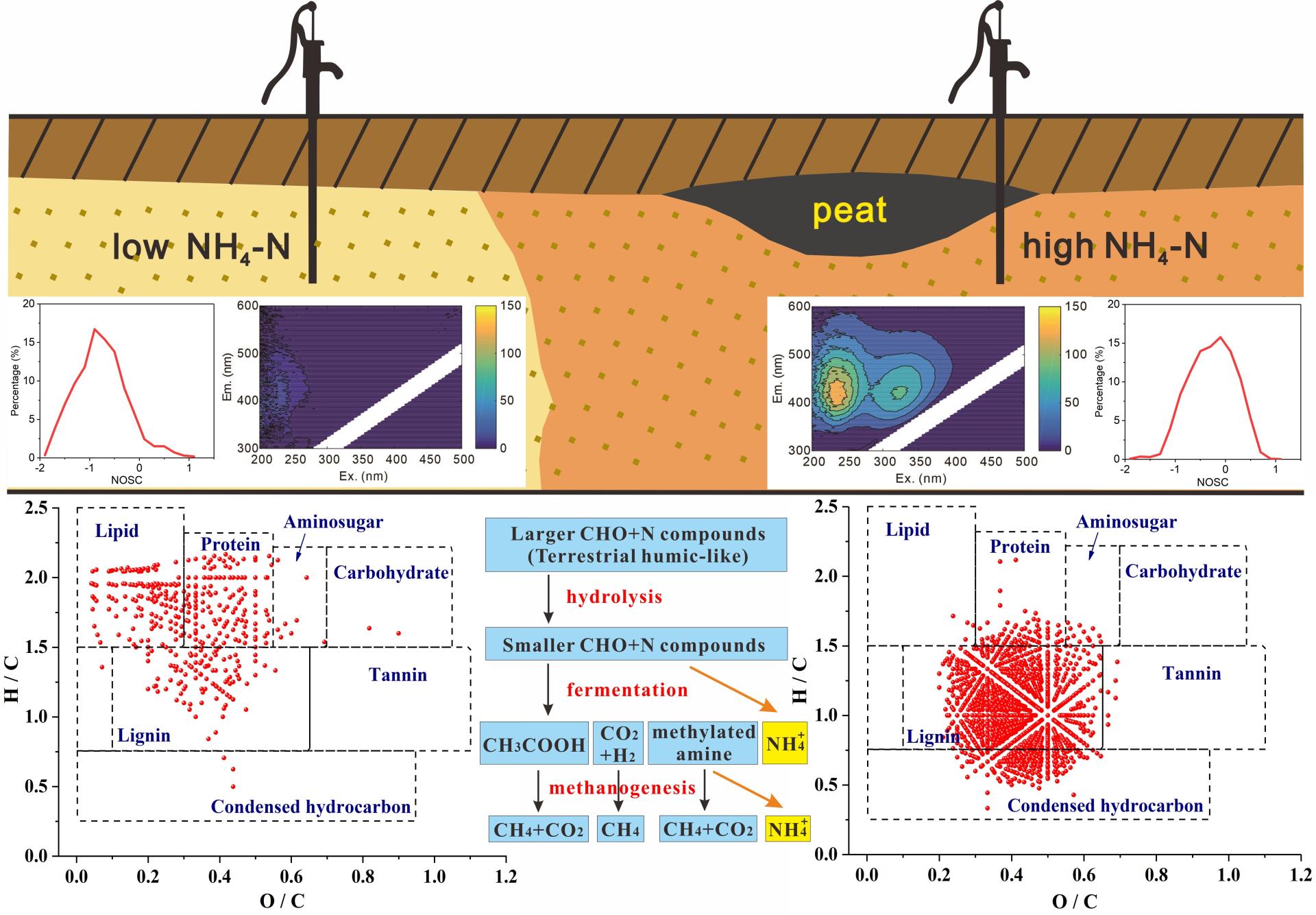 天然高铵地下水是近年来被普遍发现的一类原生劣质地下水,其铵氮浓度水平通常较人类活动引起的地下水铵氮污染更高,是内陆湿地和海岸带水体营养盐潜在的重要来源。现有研究发现高铵地下水的形成与天然有机物关系密切,但对于天然有机物对天然铵氮迁移富集的影响机理,认识十分薄弱。两项成果分别针对江汉平原内陆冲湖积相高铵地下水和珠江三角洲平原海相高铵地下水,率先综合利用有机碳与无机碳的稳定碳同位素组成、有机物三维荧光特征、有机物分子组成,分别刻画了内陆冲湖积相和海相高铵地下水的形成机制,揭示了内陆冲湖积相与海相高铵地下水成因模式的差异性,弥补了氮的环境与生物地球化学循环中一直被忽视的关键一环。
