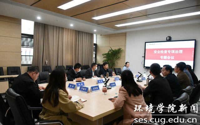 王海锋详细汇报学院基本概况及意识形态安全、学生安全稳定、实验室安全、网络信息安全、资产安全、疫情防控等安全治理工作。