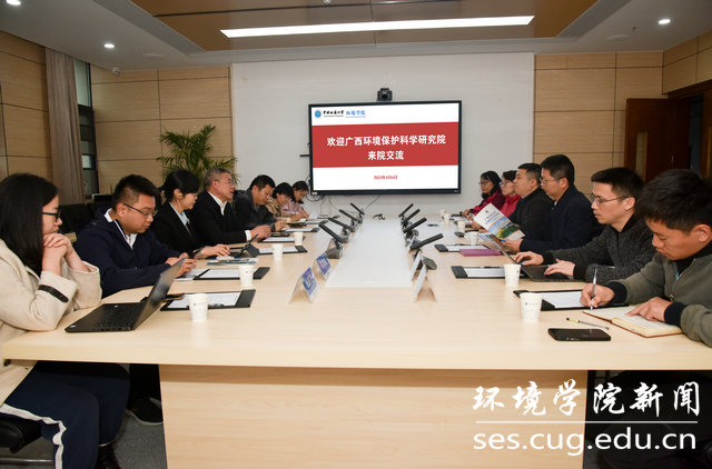 (通讯员李俊霞 编辑/摄影严丽莎)4月6日下午,广西环境保护科学研究院来beat365中文官方网站交流座谈。广西环境保护科学研究院院长邵克权、副院长方晓航、总工程师陈婷、总工室主任林华、土壤中心执行主任罗栋源、土壤中心高级工程师高何凤、土壤中心博士杜军艳,beat365中文官方网站副院长谢先军、生物地质与环境地质国家重点实验室副主任袁松虎、水资源与水文地质系主任罗明明、环境科学与工程系副主任李俊霞、实验教学中心副主任补建伟、环境科学与工程系苏春利老师等参加座谈会。谢先军主持座谈会。