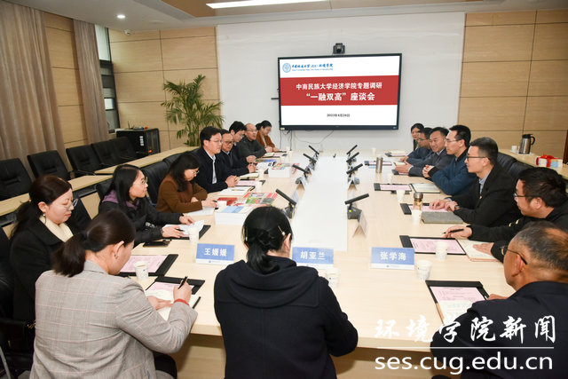 (通讯员陈俊男 摄影/编辑严丽莎)2023年4月24日下午,在科教楼四308会议室,中南民族大学经济学院党委书记柯尊韬,党委副书记、纪委书记刘君强,副院长熊芳、副院长孟庆雷,党政办公室主任王媛媛,金融学院党支部书记段世德、金融工程党支部书记王玉玲、国贸党支部书记张娟、经济统计学党支部书记刘驰、保险学党支部书记胡亚兰等一行来beat365官网专题调研“一融双高”工作。学校党委组织部副部长冷再心,学院党委书记李素矿、党委副书记王海锋,办公室主任刘凤莲,实验教学中心党支部书记潘欢迎、科技创新中心党支部书记杜尧、院直党支部书记张学海,组织秘书严丽莎、学生党建辅导员陈俊男等参加座谈会。王海锋主持座谈会。