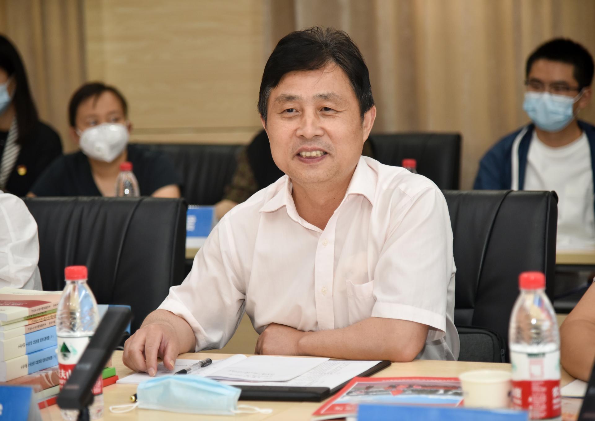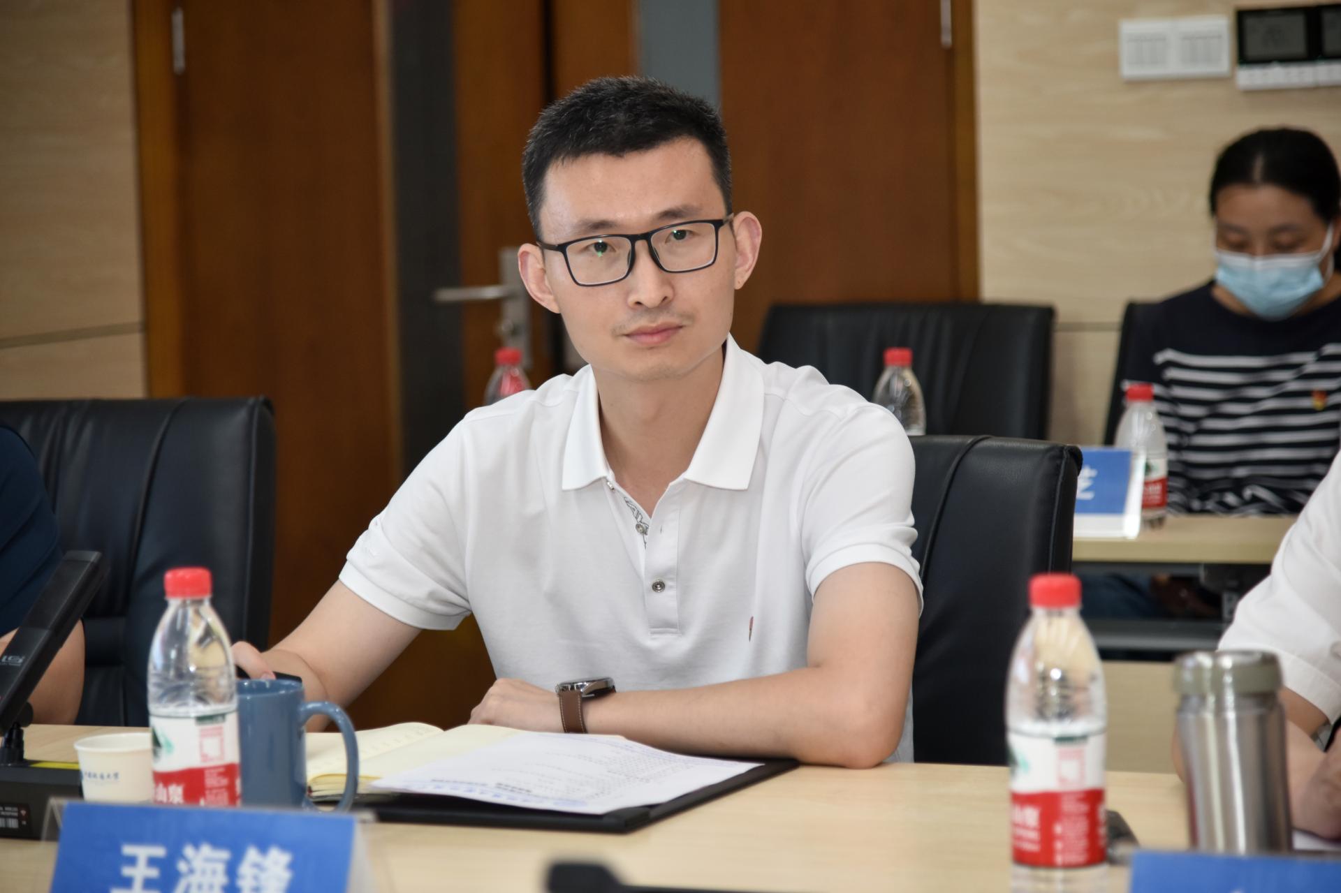(通讯员陈俊男 编辑/摄影严丽莎)2023年6月7日下午,在科教楼四308会议室,武汉职业技术学院党委副书记胡象斌,党委宣传部副部长王亚琴,计算机学院党委书记刘昌喜、外语学院党委书记江辉、纺服学院党委书记/院长戴冬秀、直属党支部书记周会川、体育美育部部长、党总支书记汪胜、离退休工作处处长兼党总支书记梅红明及部分科级干部、组织员和师生党支部书记代表一行来beat365官网进行党建“双创”工作专题交流。我校党委副书记、纪委书记唐忠阳,学校办公室副主任姜明敏,学院党委书记李素矿,学院党委副书记王海锋,学生党建辅导员陈俊男及“张国旗班”党支部副书记车金凝等参加座谈会。王海锋主持座谈会。