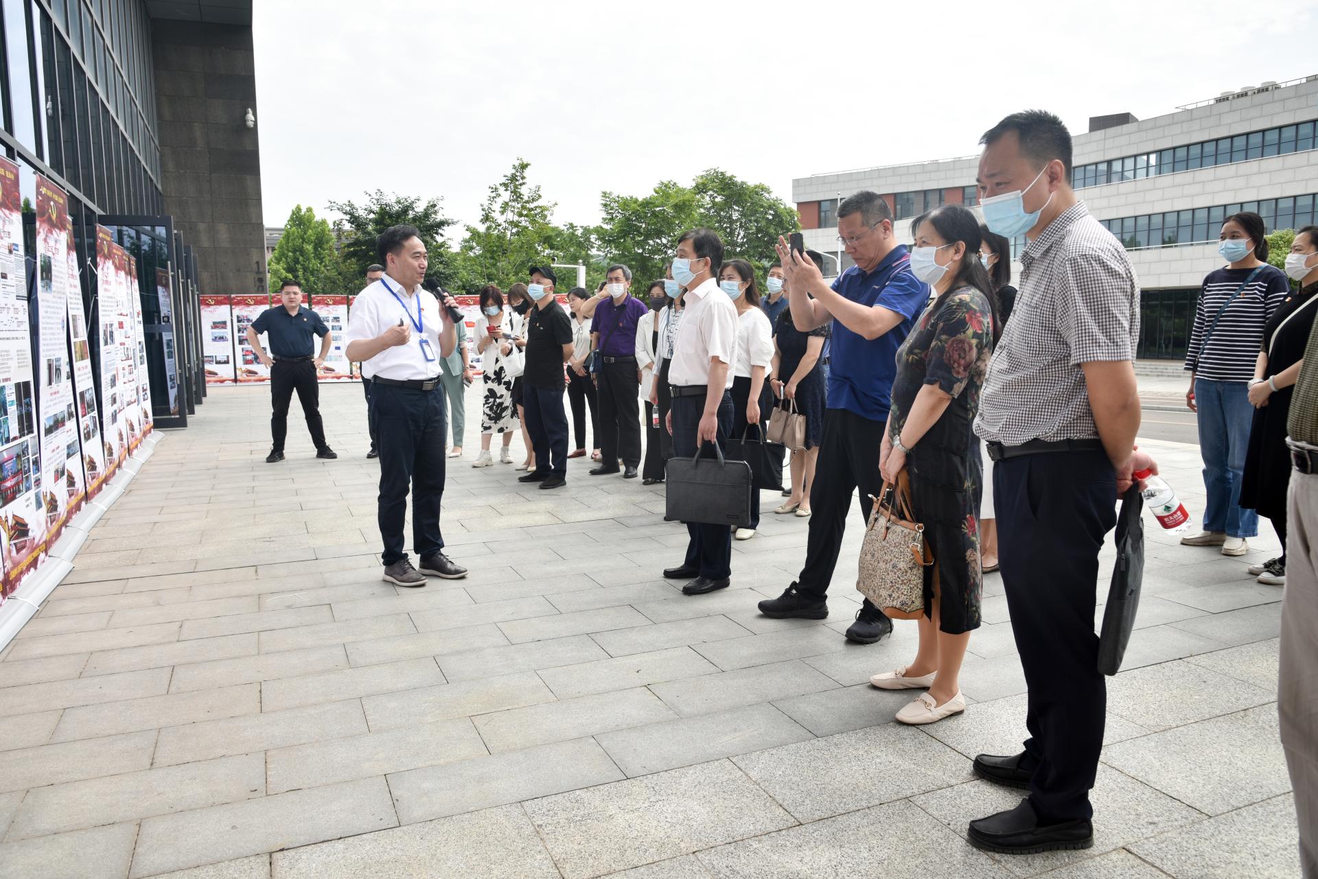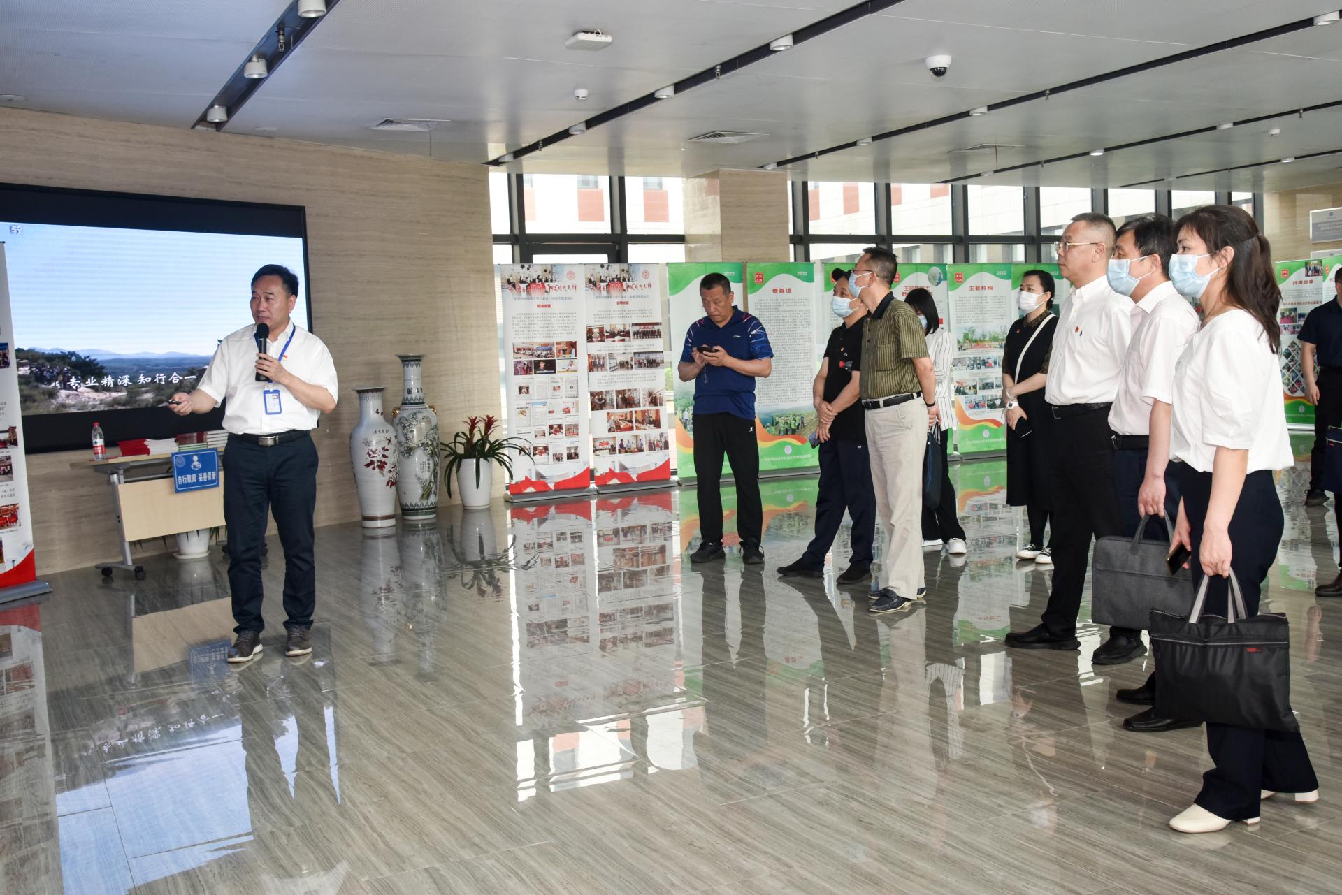 与会人员集体参观以英雄榜样人物命名的全国党建工作样板支部成果展板及beat365中文官方网站党建“双创”工作成果展板,李素矿介绍了以英雄榜样人物命名的全国党建工作样板支部基本概况和建设成果,重点讲解了beat365中文官方网站基本概况、党建工作体系、三全育人改革、跨学科教育研究、张国旗班行动计划、“4+N”美丽中国课程思政、“1+6”党建资政育人载体、兄弟院校交流互鉴、领导关怀指导和社会媒体反响等十个方面,全面反映了学院党委近年来党建示范创建和质量创优工作取得的创新性理论成果、制度成果、实践成果和特色成果,是环境人干事创业、追求卓越的汗水结晶。