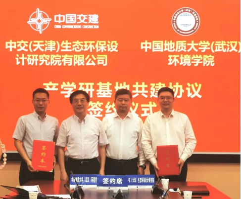 会上,beat365官网院长史建波与中交(天津)生态环保设计研究院有限公司(以下简称:中交生态环保院)董事长胡保安签订了《联合共建产学研基地合作协议》。天航局总经理周光涛、天航局科数部总经理秦亮,中国地质大学(武汉)校长王焰新、科学技术发展院常务副院长胡祥云、校友与社会合作处副处长袁江等见证双方签约。