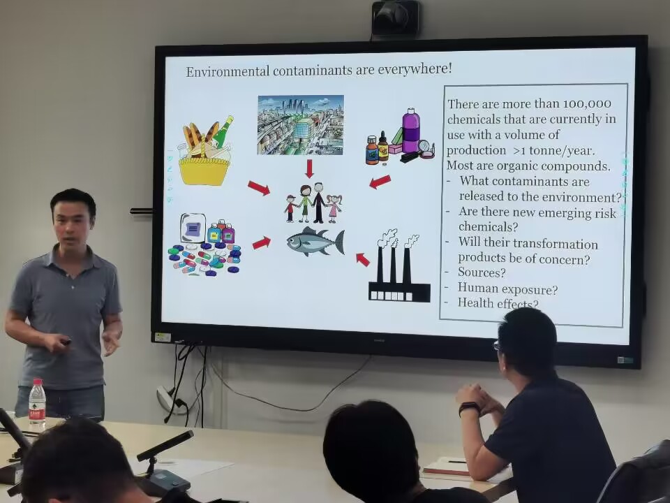 Thanh Wang博士首先介绍了高分辨质谱对化合物靶向和非靶向筛选的基本思路和发展现状。在此基础上,Thanh Wang博士报告了他利用高分辨质谱识别室内环境中化学物质的研究结果,分享了他对高分辨质谱检测工作的相关经验,并重点介绍了他在质谱捕获的化合物特征分组以及识别化合物来源方面的数据分析策略。最后,Thanh Wang博士展望了高分辨质谱靶向及非靶向筛查在环境领域的一些研究方向。