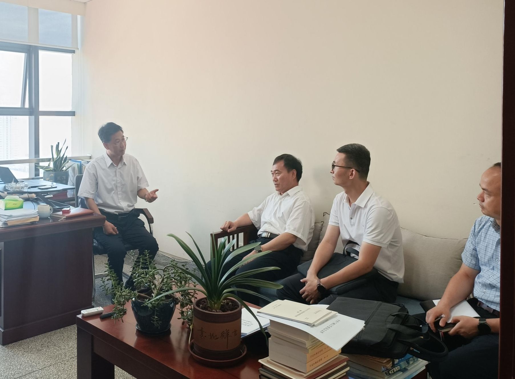 李素矿一行与田文寿进行了深入的交流。