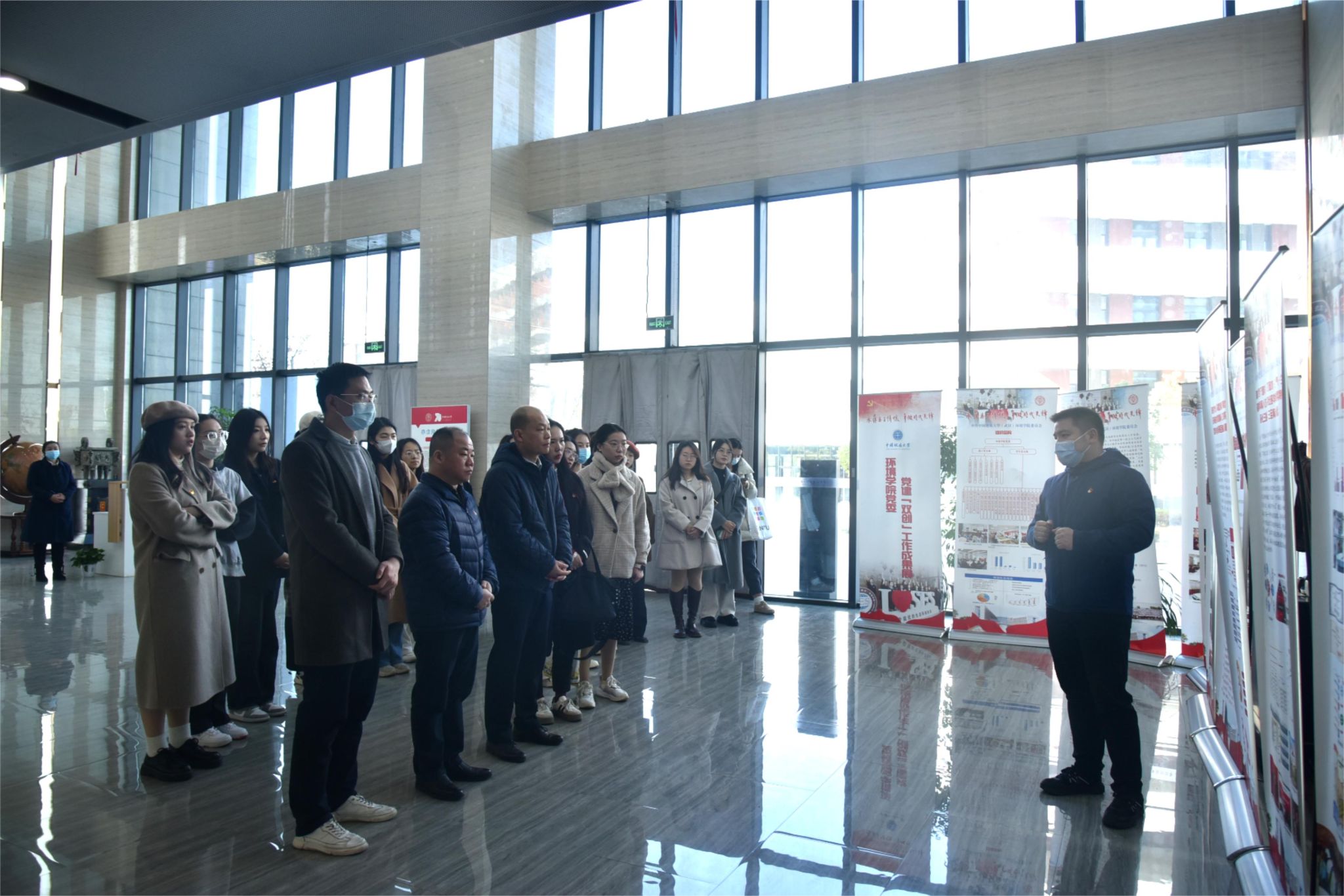 会前,与会人员集体参观beat365中文官方网站党建“双创”工作成果展,陈俊男重点讲解学院基本概况、党建工作体系、三全育人改革、跨学科教育研究、张国旗班行动计划、“4+N”美丽中国课程思政、“1+6”党建资政育人载体、兄弟院校交流互鉴、领导关怀指导和社会媒体反响等十个方面,全面反映了学院党委近年来党建示范创建和质量创优工作取得的创新性理论成果、制度成果、实践成果和特色成果,是环境人干事创业、追求卓越的汗水结晶。