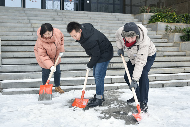 道路冻结,铲除困难。学院领导坚守岗位、靠前指挥,党员干部冲锋在前,学院师生积极行动,门卫物业赶来助战。经过师生一上午奋战,顺利清除了beat365中文官方网站大楼西门、南门、车库入口等主要出入口的冻冰积雪,清扫出一条条“温暖平安路”,为师生出行筑牢安全屏障。