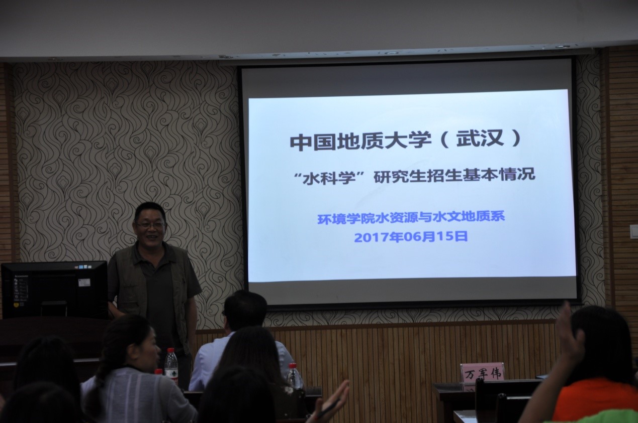 (通讯员余露)6月14-15日,beat365中文官方网站顺利举办了2017年研究生招生校园开放日活动。2017年6月15日上午10点,beat365中文官方网站研究生校园开放日咨询会在文华楼205召开。研究生院招生科科长王蕾,beat365中文官方网站院长马腾、水资源与水文地质系主任万军伟、研究生秘书刘凤莲、研究生辅导员王碧,以及来自各大高校本科生代表等参加会议。研究生工作部部长刘世勇也到场巡视并参加了开幕式。会议由王碧主持。