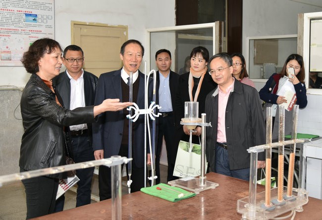 考查专家组考察beat365中文官方网站教学实验中心,梁杏教授介绍水文地质学基础实验室基本情况。