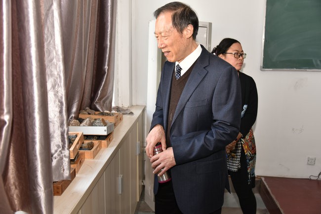 考查专家组考察岩矿实验室。