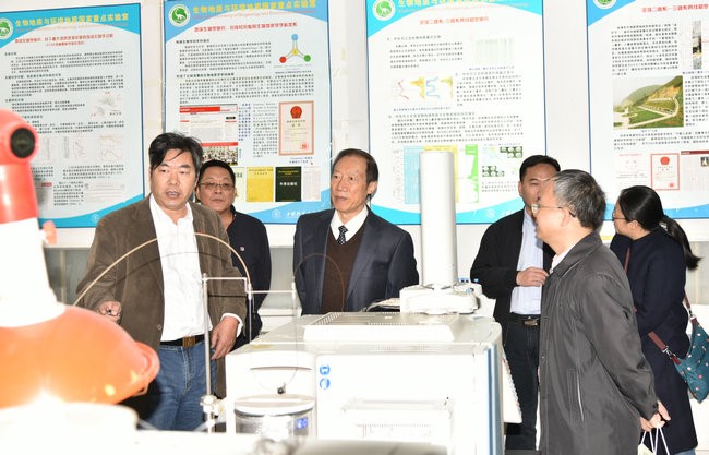考查专家组考察生物地质与环境地质国家重点实验室,常务副主任祁士华教授介绍有关情况。